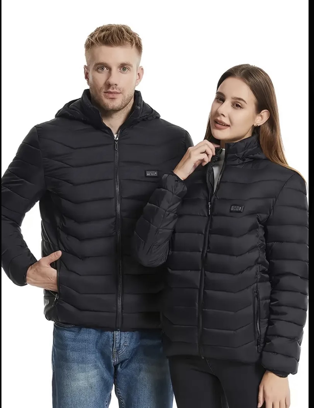 Nei, det er ingen farer! Siden det ikke er noen spenningsførende krets i jakken, har du ingenting å bekymre deg for. Spenningen på powerbank er lav, så de er ikke farlige.